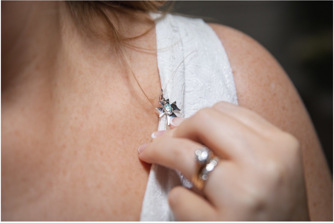My daughter loves Sigma Chi almost as much as her brother and I do. I had given her a sweetheart pin several years before as well as various other sweetheart things. At her wedding in 2023, she and I were waiting outside the doors for me to walk her in, and she smiled and said, “Dad, I have something to show you.” She pulled over the shoulder of her dress to reveal that she