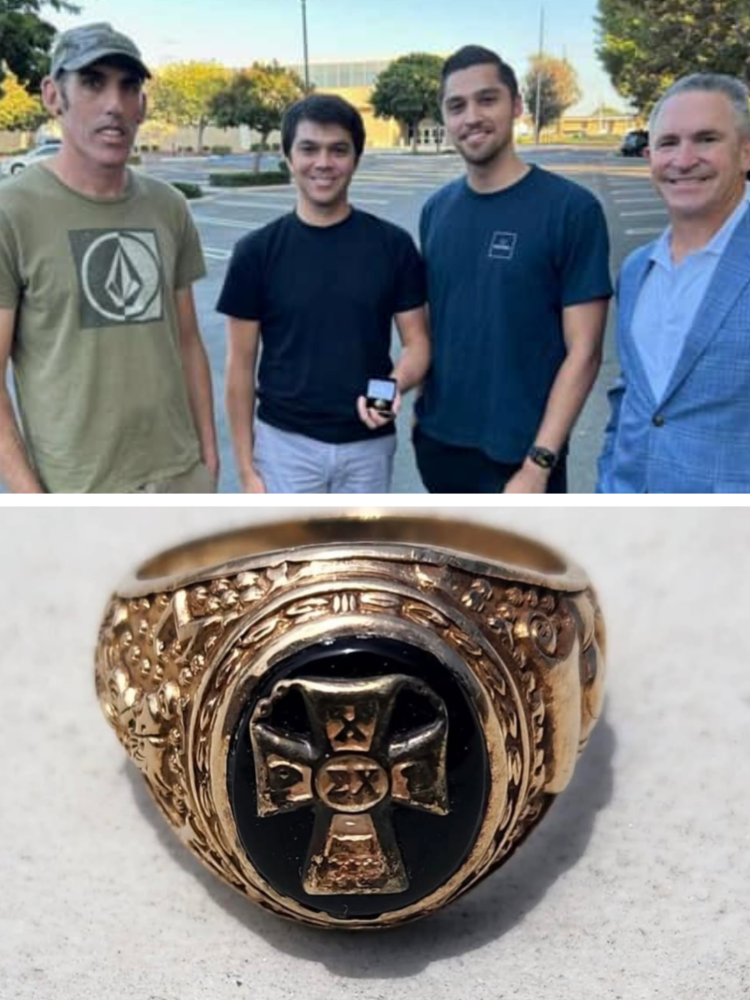 Jaren wanted to be certain before accepting the ring. He reached out to one of his father’s best friends, who recalled that Greg wore a gold ring. When Jaren showed him photos of the ring, his friend confirmed it was indeed his father’s. I arranged a meeting a couple of weeks later with Joey, Jaren, and Jaren’s brother Joshua in Newport Beach. They were thrilled to hold a very special piece of their late father’s past. Jaren believed the ring had been lost for about 20 years. With the ring back in familial hands, my quest was over.