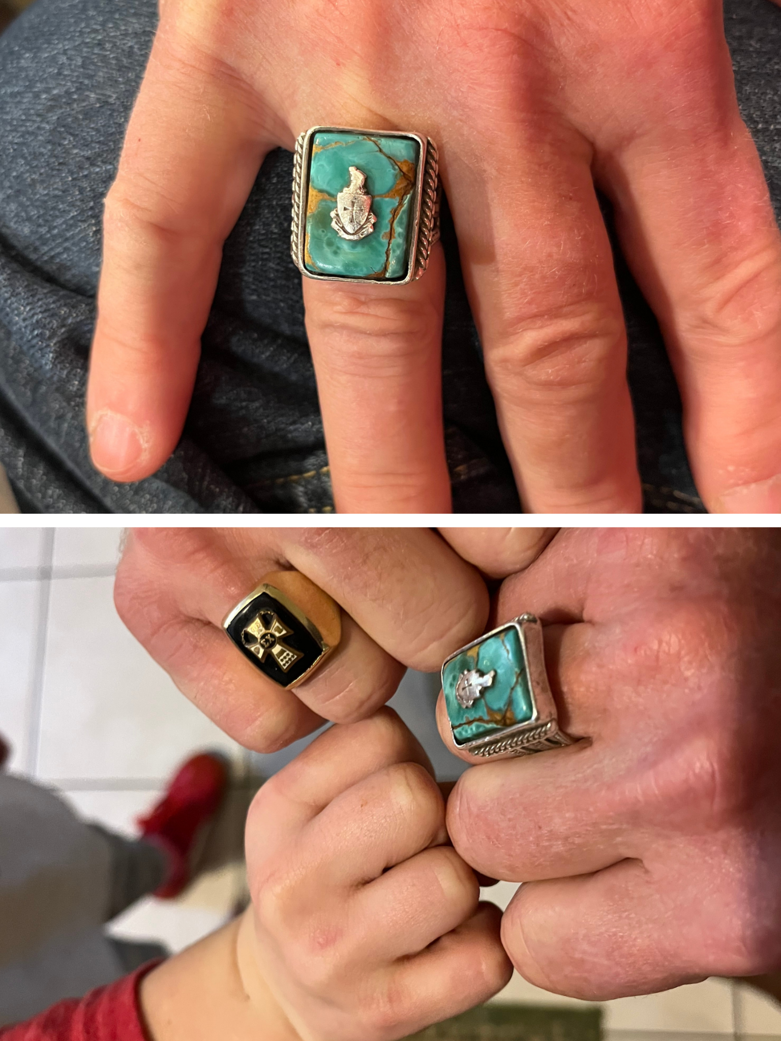 blessed by Balfour or the Fraternity. I had it made by a local Native Indian artisan based on my design and have worn it for over 50 years.” Due to the significance it had in my heart and obviously in his heart, I had a duplicate made for my son, Will Arrington, NEW MEXICO 2012, and will have one made for the hand of a future brother, 6-year-old grandson Glenn Arrington.